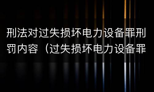刑法对过失损坏电力设备罪刑罚内容(过失损坏电力设备罪的构成要件)