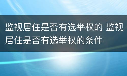 监视居住是否有选举权的 监视居住是否有选举权的条件