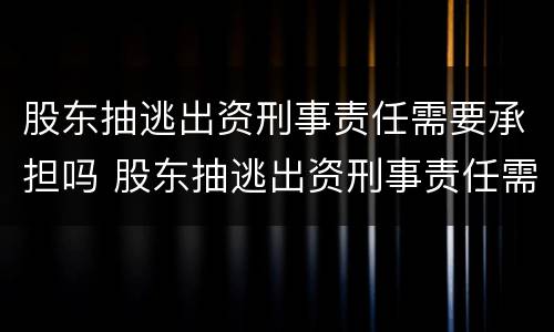 股东抽逃出资刑事责任需要承担吗 股东抽逃出资刑事责任需要承担吗法律