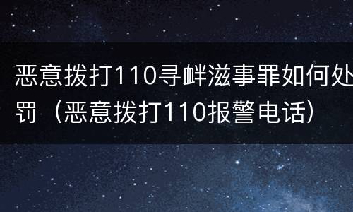 恶意拨打110寻衅滋事罪如何处罚(恶意拨打110报警电话)