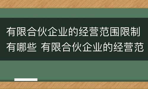 有限合伙企业的经营范围限制有哪些 有限合伙企业的经营范围限制有哪些