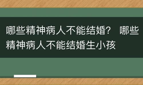 哪些精神病人都是可以结婚,因为根据我们国家《民法典》当中明确的规定,已经取消了疾病作为不能结婚的限制和规定。但是如果是属于直系血亲或者是三代以内的旁系血亲的话,仍然是禁止结婚的。