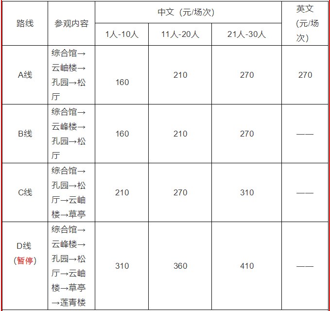 (二)请团队游客所有人员到齐后,按实际接受讲解服务的人数缴纳讲解费;配备专用讲解设备后,讲解即刻开始。
