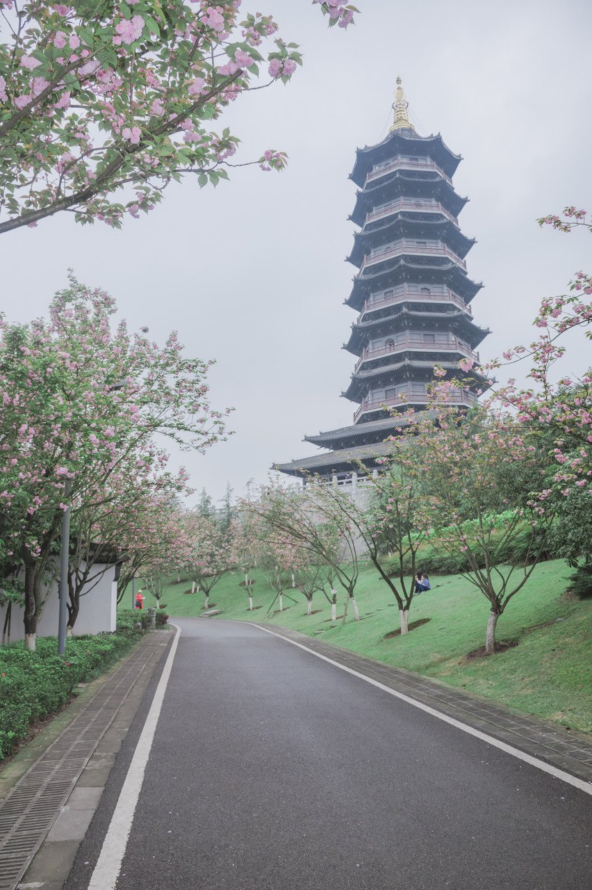 重庆园博园荟萃园现有1.5公里长的樱花大道,这条樱花大道还曾斩获 “重庆公园最美园路”称号, 也是重庆园博园赏花踏春必去的特色打卡景点,在3月初-4月中旬 ,4000余株日本晚樱将展露容颜。
