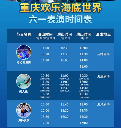 2021重庆欢乐海底世界六一儿童节表演时间表