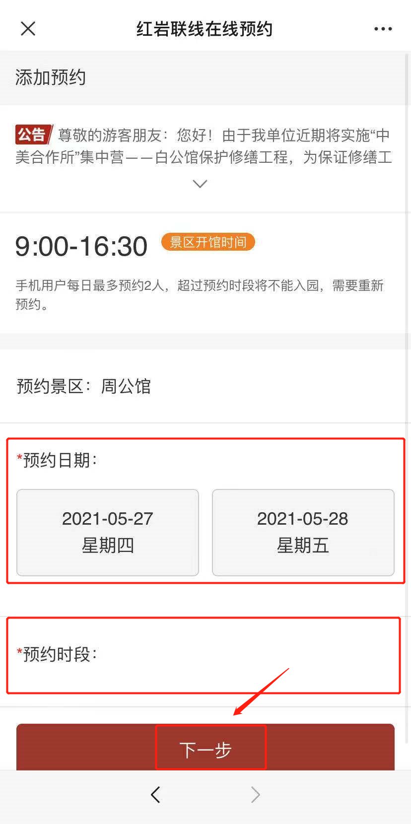 5.选择参观日期及预约时段