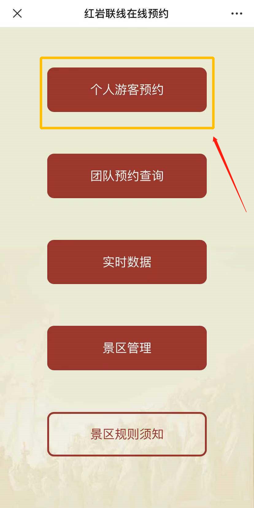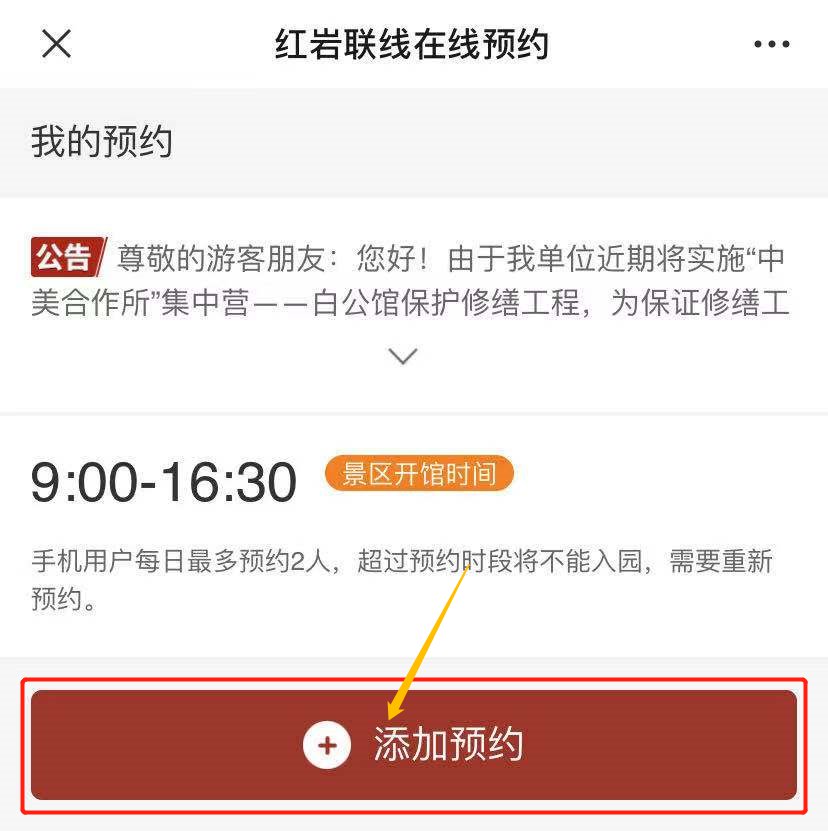 预约方式:搜索关注“红岩联线”微信公众号,进入“公共服务”“景区预约”“个人游客预约”进行实名预约。