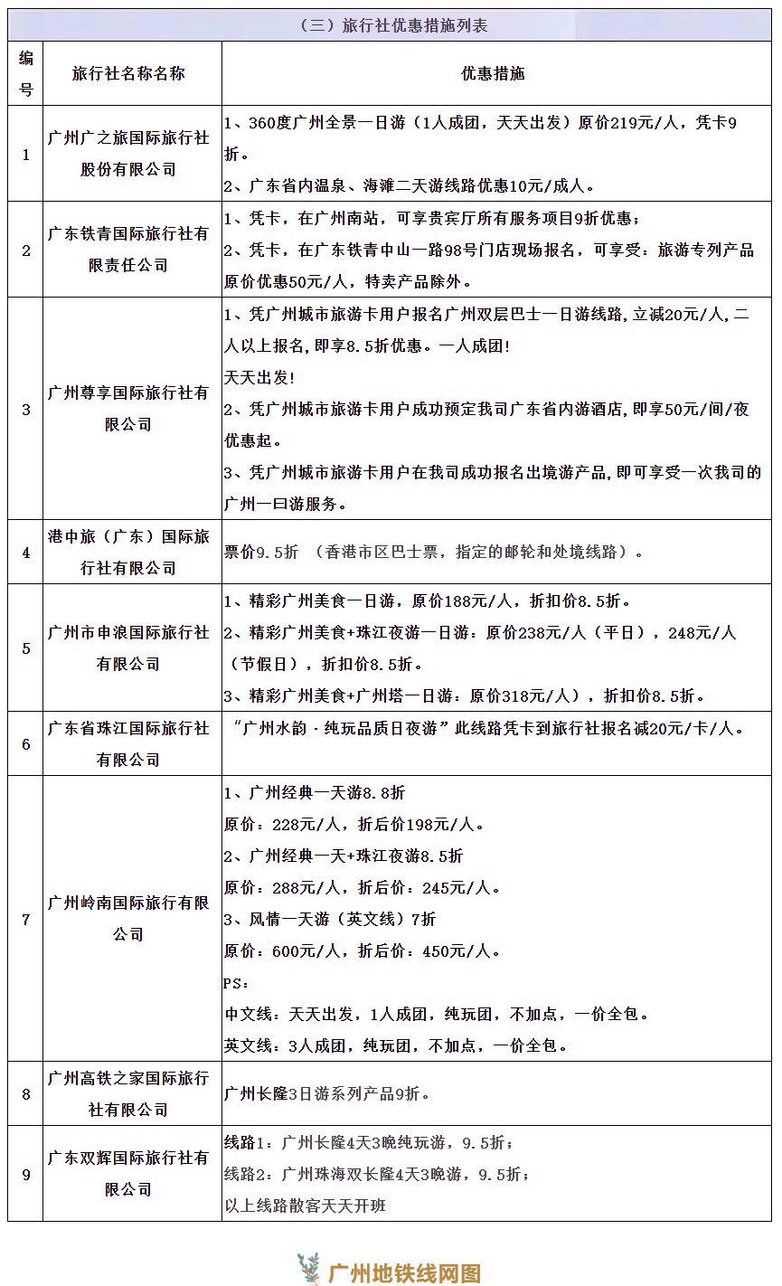 3.外地游客凭本人身份证、入住广州酒店的信息、48小时内抵达广州白云机场登机牌,即可在广之旅旗下20间门市店(见附件名录)免费领取旅游卡。
