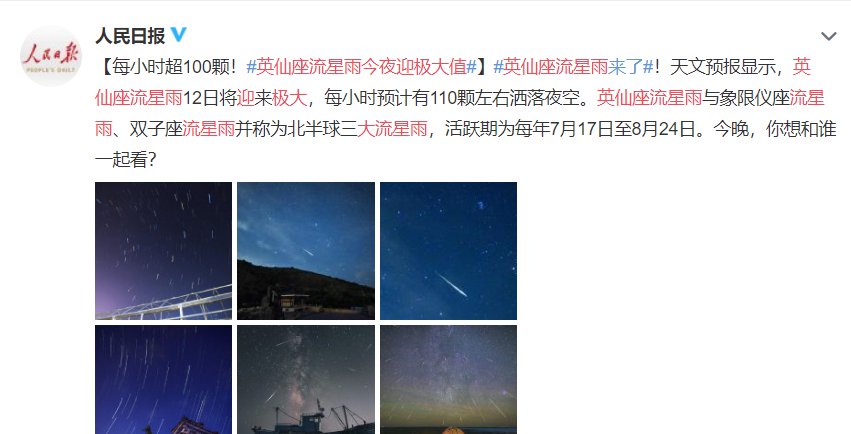 【每小时超100颗!英仙座流星雨今夜迎极大值】