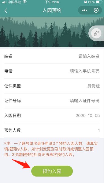登陆之后点击入园预约或游船预约: