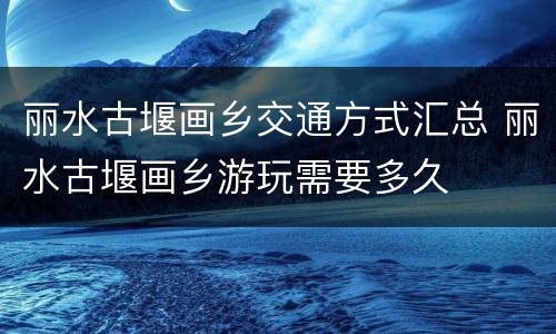 丽水古堰画乡交通方式汇总 丽水古堰画乡游玩需要多久