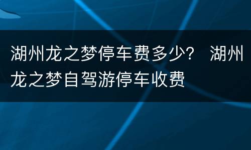 湖州龙之梦停车费多少? 湖州龙之梦自驾游停车收费