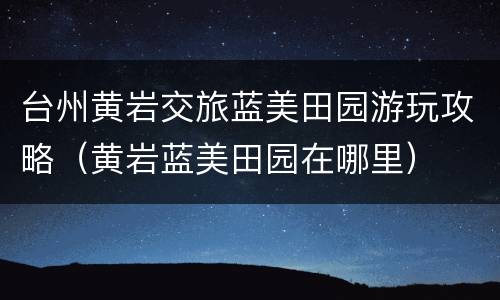 台州黄岩交旅蓝美田园游玩攻略(黄岩蓝美田园在哪里)