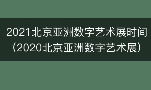 2021北京亚洲数字艺术展时间(2020北京亚洲数字艺术展)