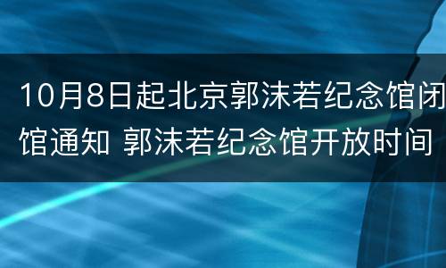 北京郭沫若纪念馆官方发布最新通知:10月8日起,北京郭沫若纪念馆进行施工改造,决定闭馆,恢复开放时间另行通知!