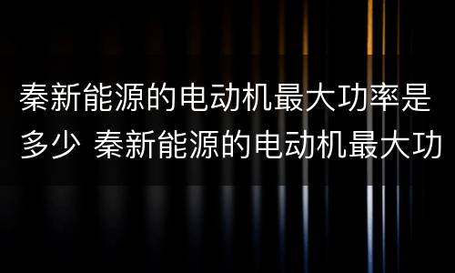 秦新能源的电动机最大功率是多少 秦新能源的电动机最大功率是多少千瓦